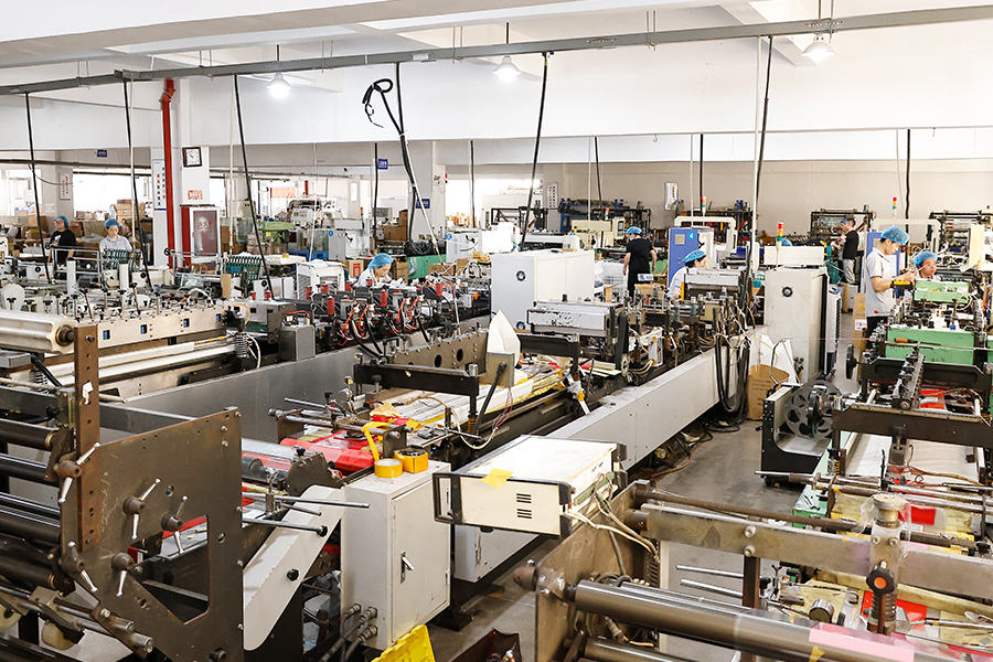 1050型高速复合机(可做自立袋、夹链袋),有10台多功能热切机、底封机。拥有吹膜、印刷、复合、分切、制袋、模切、设计的成套设备。